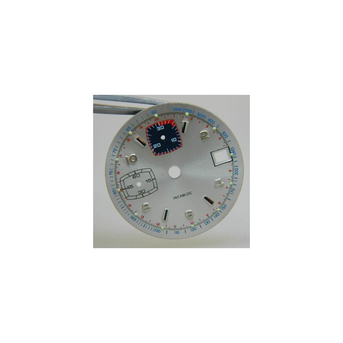 date à 3h, compteur 30mn à 12h et trotteuse à 9h
