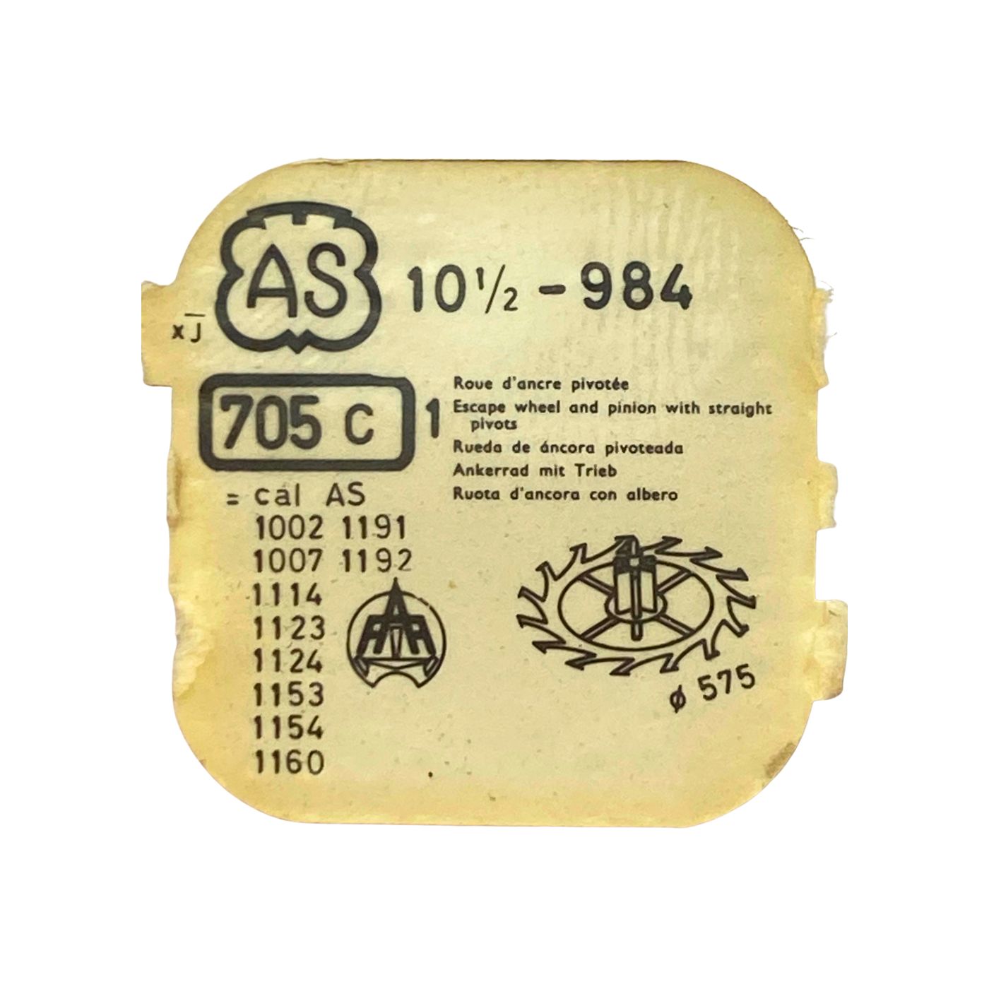 AS 984 - 705 Roue d'ancre pivotée (à l'unité) - Escape wheel and pinion with straight pivots (per unit)