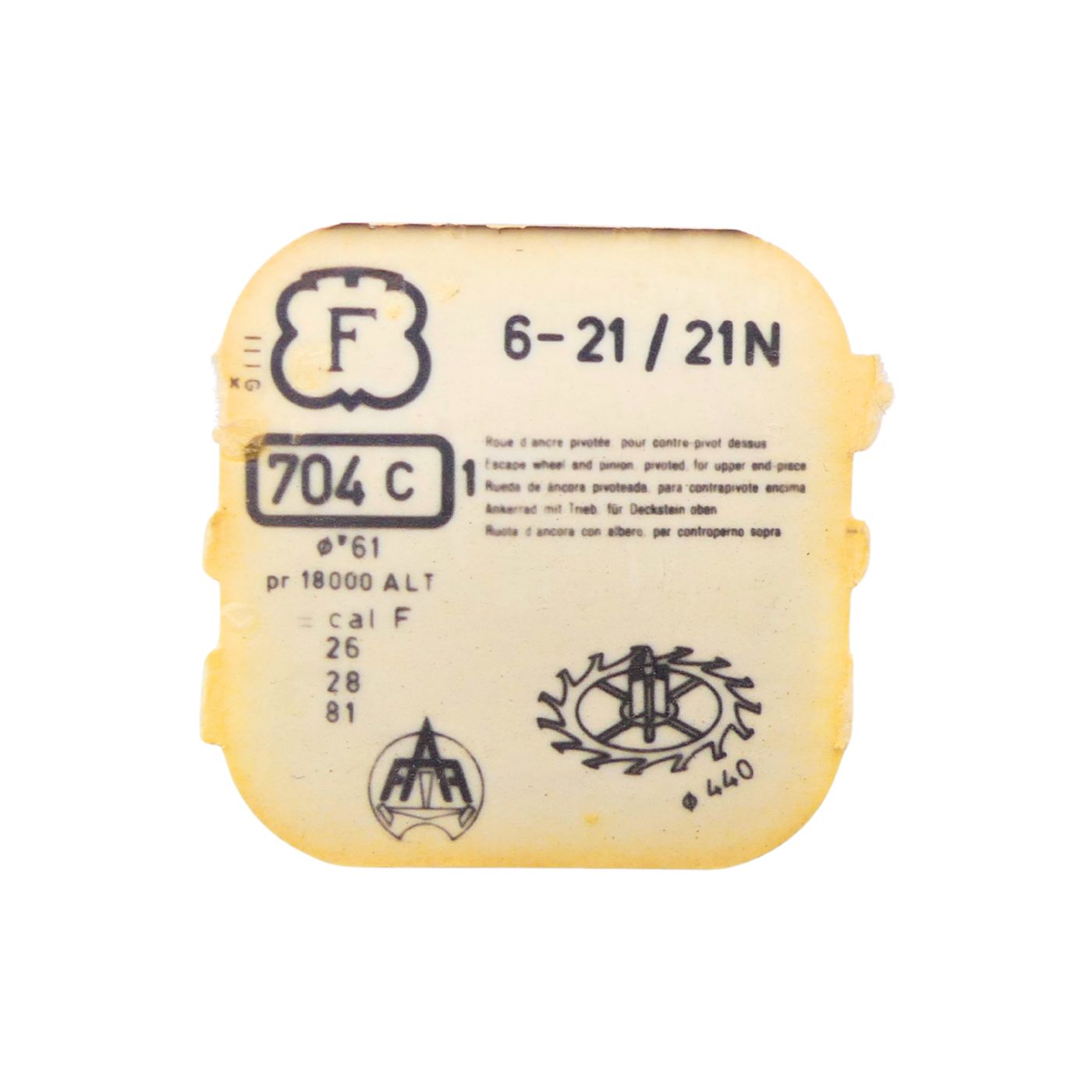 Felsa 21/21N - 704 Roue d'ancre pivotée pour contre-pivot dessus (à l'unité) - Escape wheel and pinion pivoted for upper end-pie