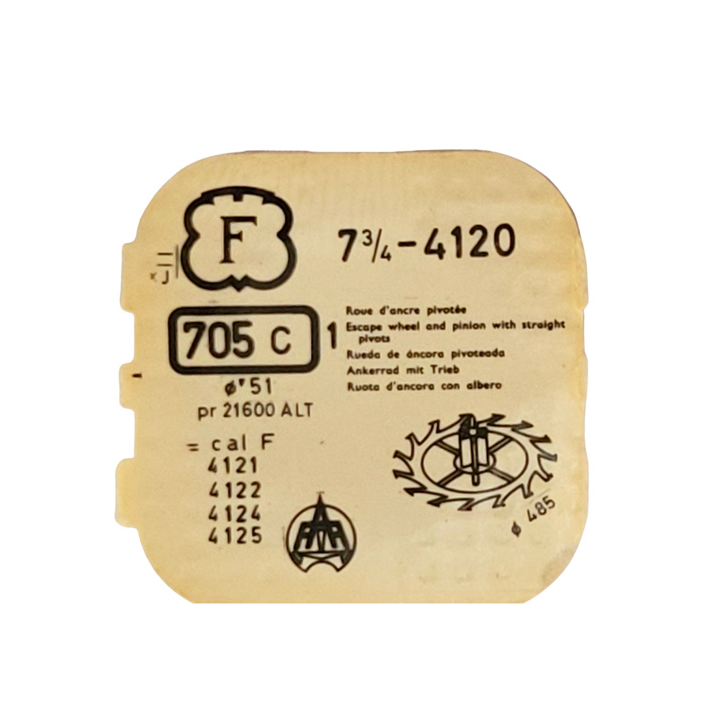 Felsa 4120 - 705 Roue d'ancre pivotée (à l'unité) - Escape wheel and pinion with straight pivots (per unit)
