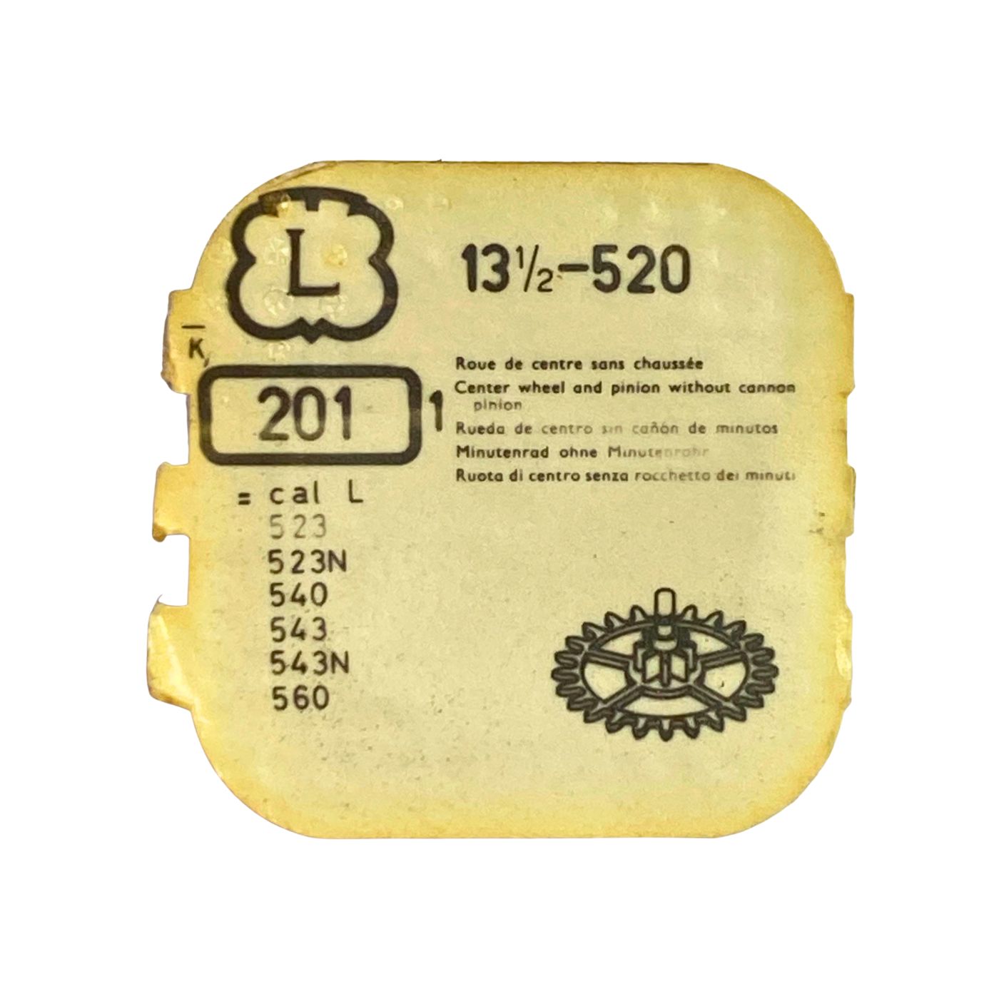 Landeron 520 - 201 Roue de centre sans chaussée (à l'unité) - Center wheel and pinion without cannon pinion (per unit)