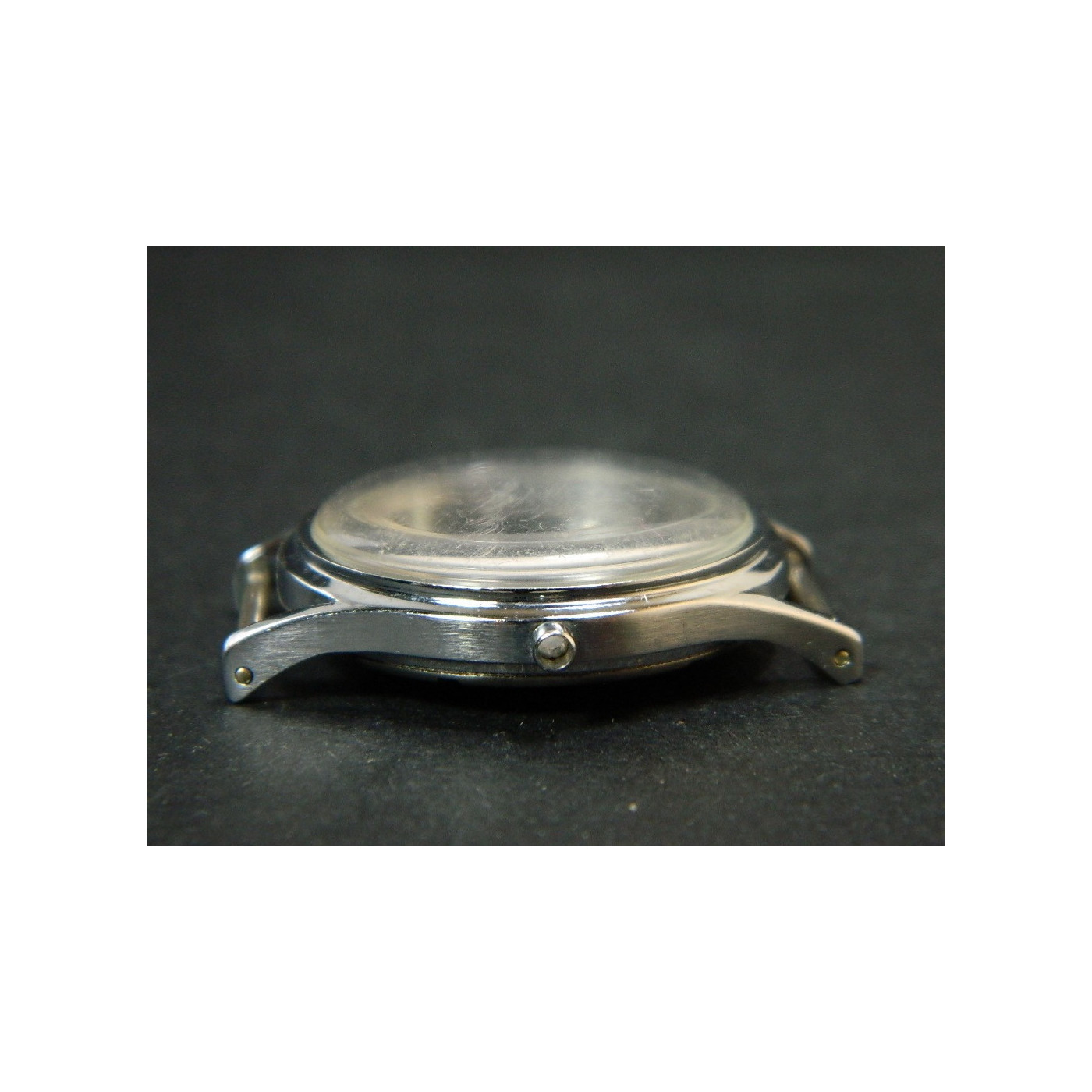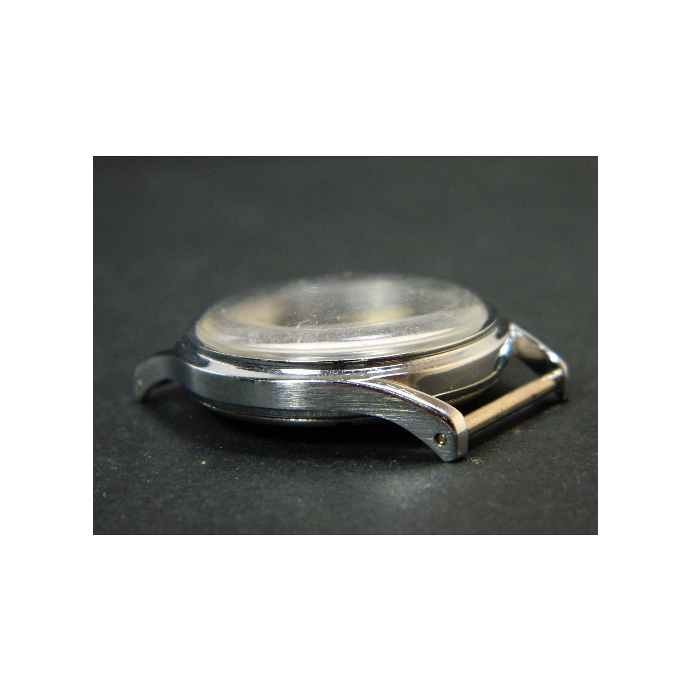 fond acier, carrure chromé