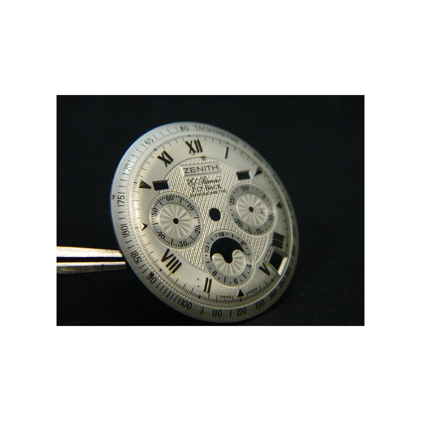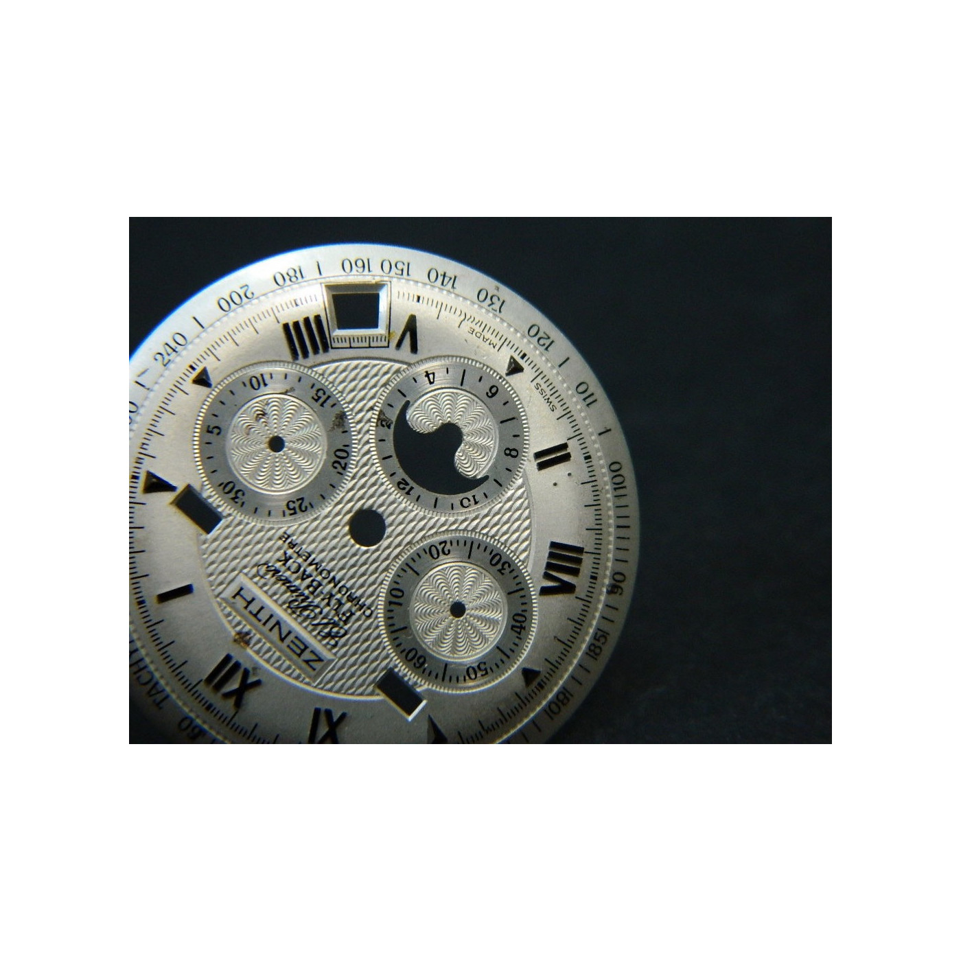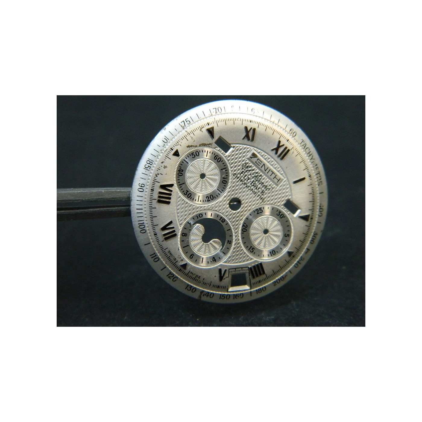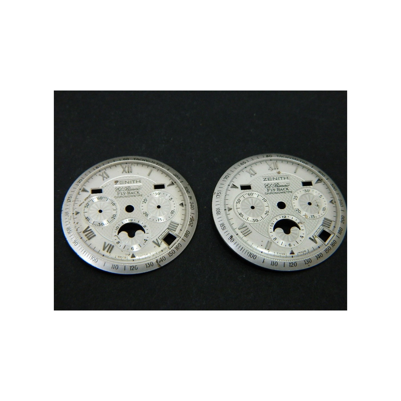 cadran ZENITH CHRONOMASTER FLYBACKLot de 2 piècesdiamètre 32,00 mmindex argentpieds: 7mm & 37mmcouleur: gris argentquelques rayures sur les cadrans!few scratches on the dials