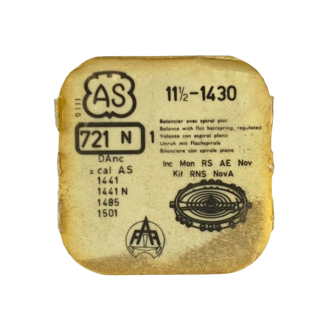 AS 1430 - 721 Balancier avec spiral plat (à l'unité) - Balance with flat hairspring regulated (per unit)