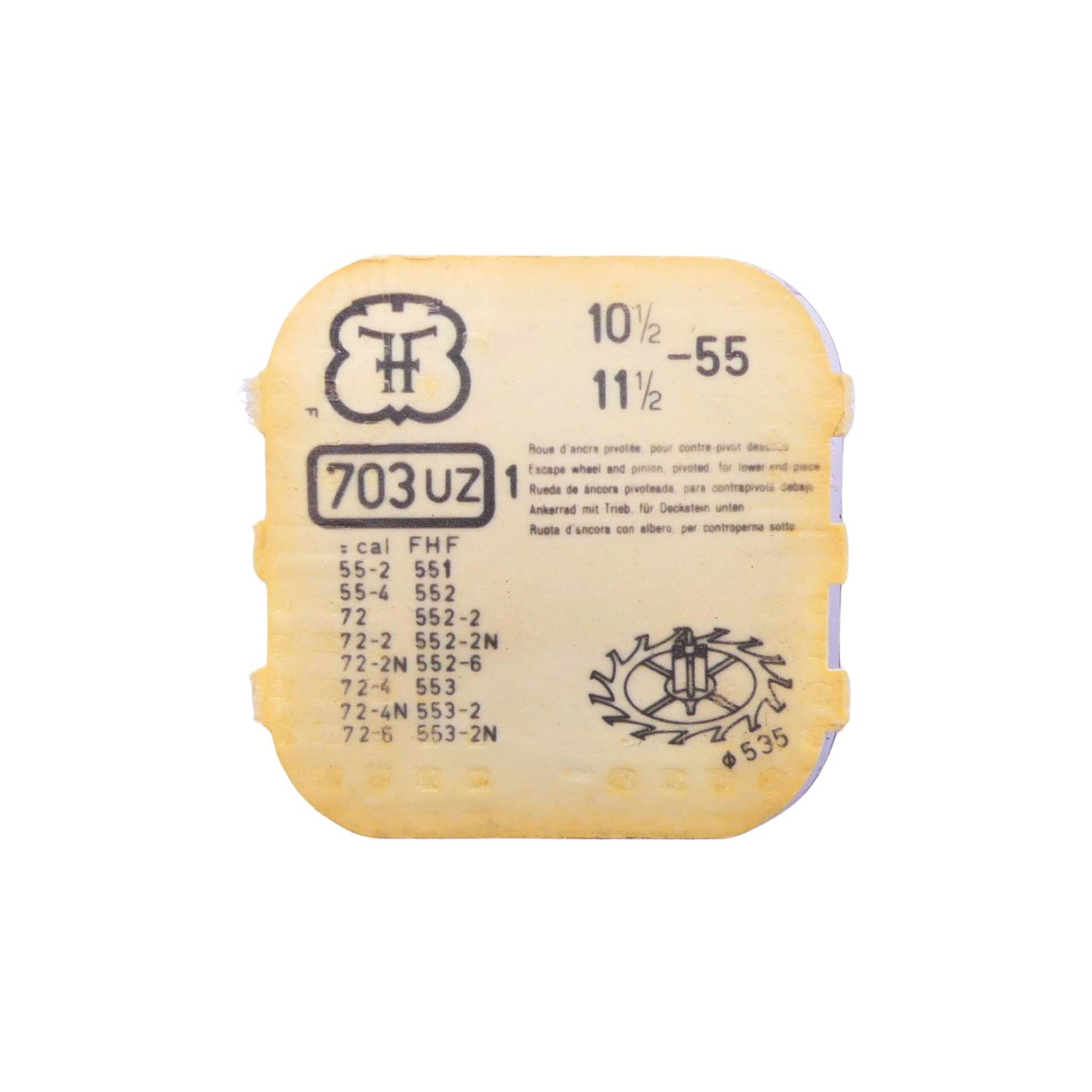 FHF 55 - 703 Roue d'ancre pivotée pour contre-pivot dessous (à l'unité) - Escape wheel and pinion pivoted for lower end-piece (p