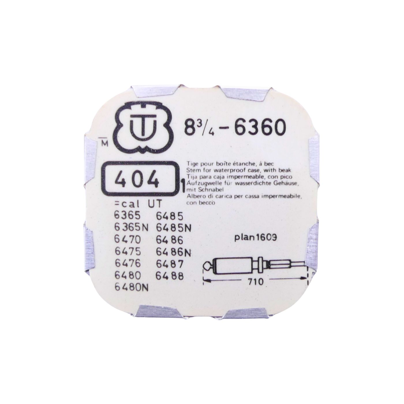 Unitas 6360 - 404 Tige pour boite étanche (partie mouvement) (à l'unité) - Stem for waterproof case (movement portion) (per unit